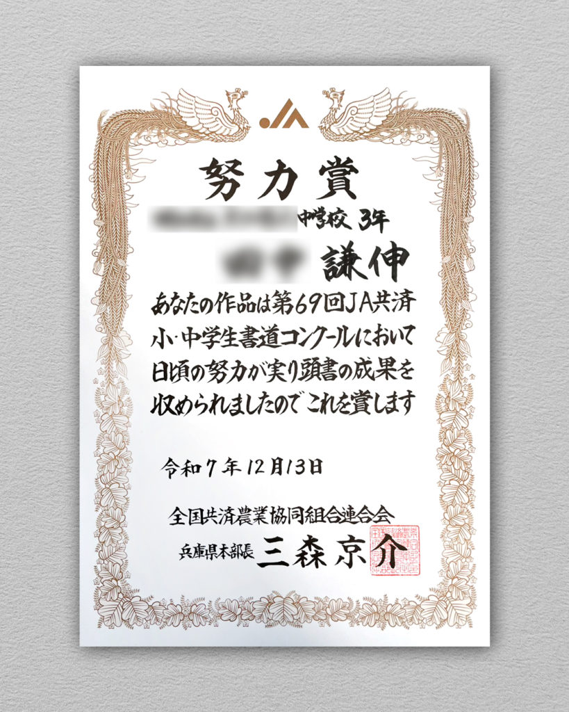 長女が中学に入り部活に勉強にと忙しくなりましたが特待生になれるまではと何とか頑張り中学2年生の頃に念願の特待生になれました。そこで辞めてしまいましたが長女は書道教室に通ったおかげで字がキレイになれた事をとても喜んでいます。